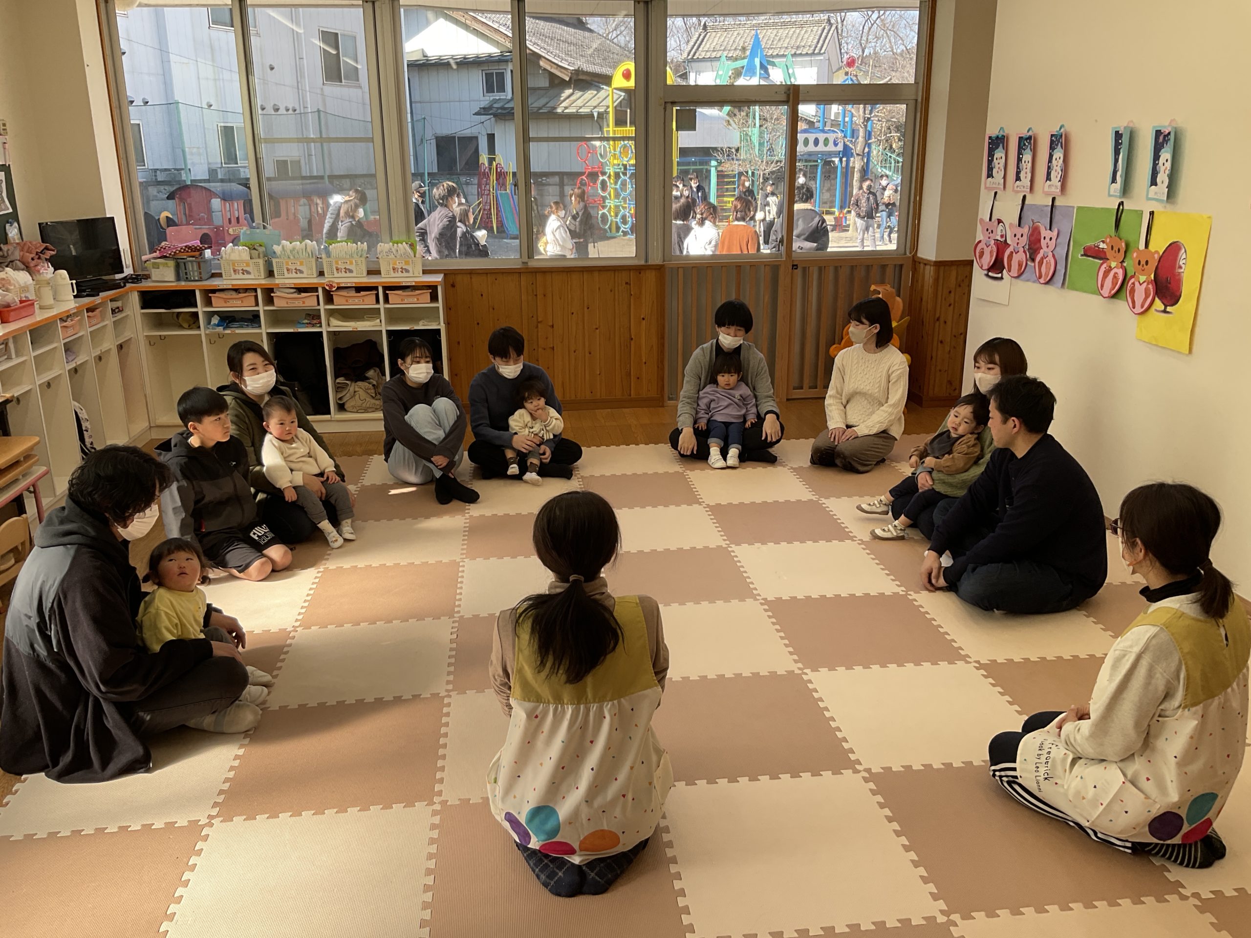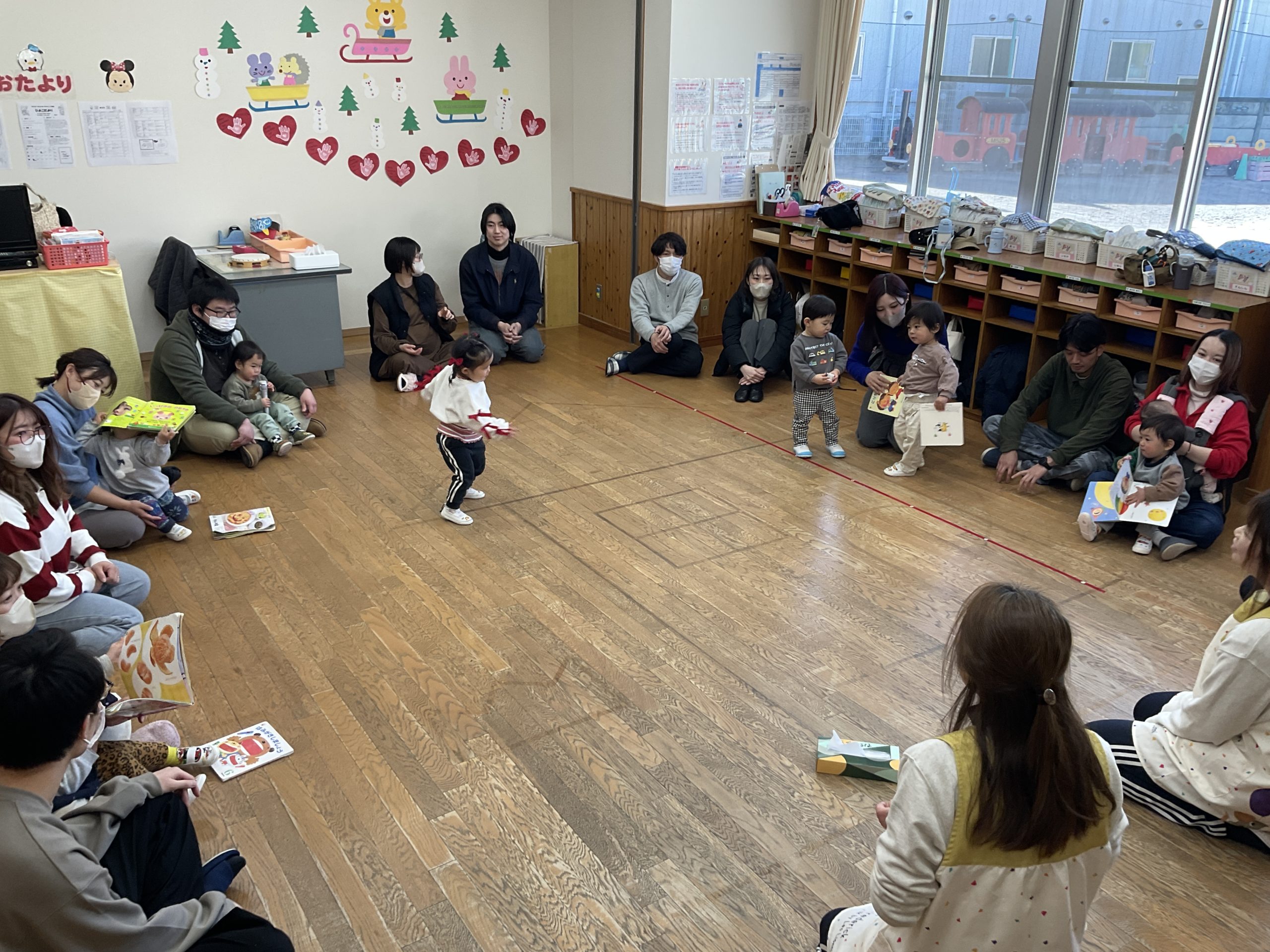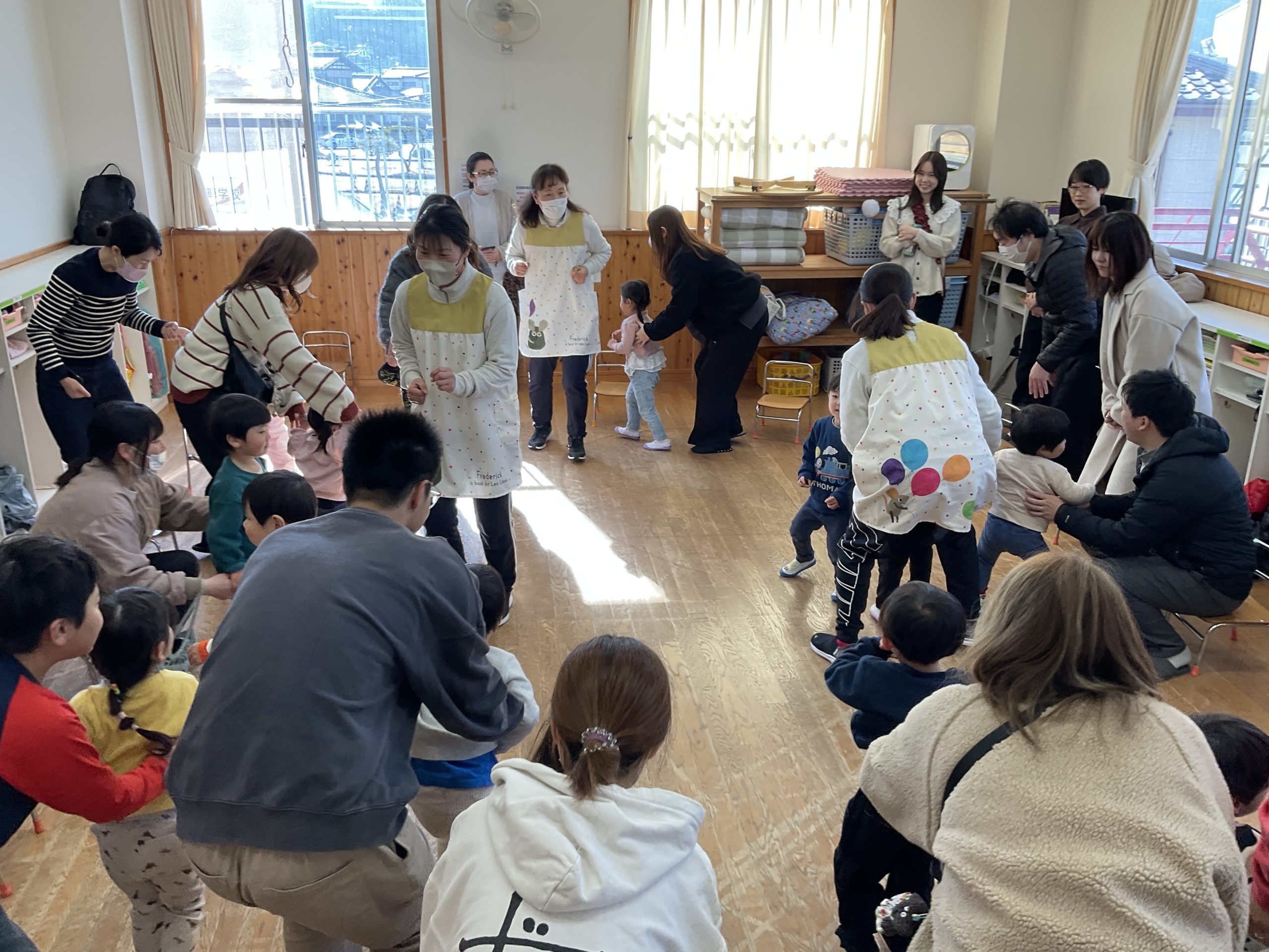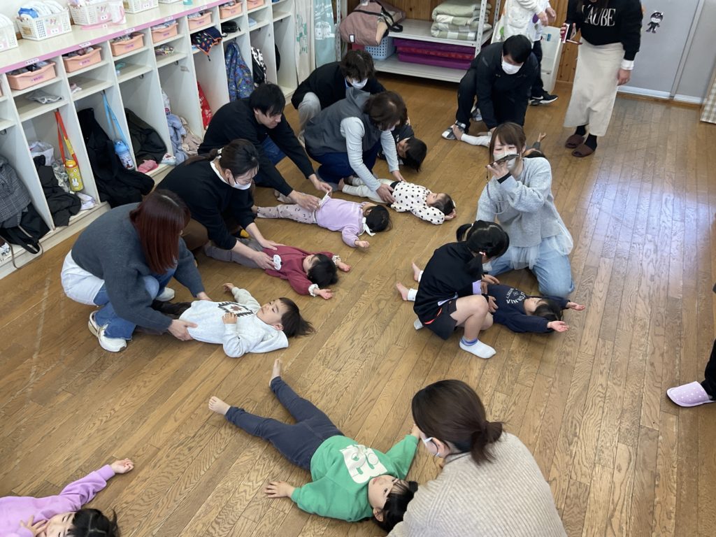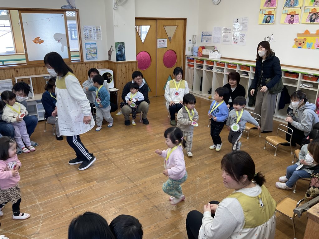 先日行われた保育参観の様子です。今年度最後の参加日では、リズム遊びや室内ゲーム、ドッジボール、制作など子どもたちが日頃から楽しんでいる活動をお家の人と一緒に楽しみました。活動を通して子どもたちの成長を感じて頂けたと思います。また、最後にはお家の人への感謝の気持ちを込めて歌のプレゼントをしたりと心温まるひとときとなりました。また、お家の方からはお子様の成長のお話を聞くことができとても良い参観日となりました。