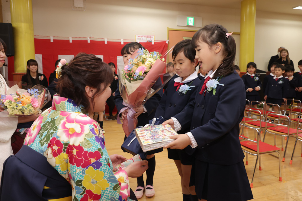 3月19日に行われた卒園式の様子をお届けします。「みんな 強く・正しく・明るい子」ほうしょう幼稚園のスローガンにふさわしく大きく育った園児45人が園を育っていきました。園長先生から卒園証書を受け取る姿は一人ひとりが自信に満ちあふれてひと回りもふた回りも大きくみえました。今まで、ご協力ご支援いただきました保護者の皆様にも大変感謝申し上げます。卒園してもずっと応援していますよ!